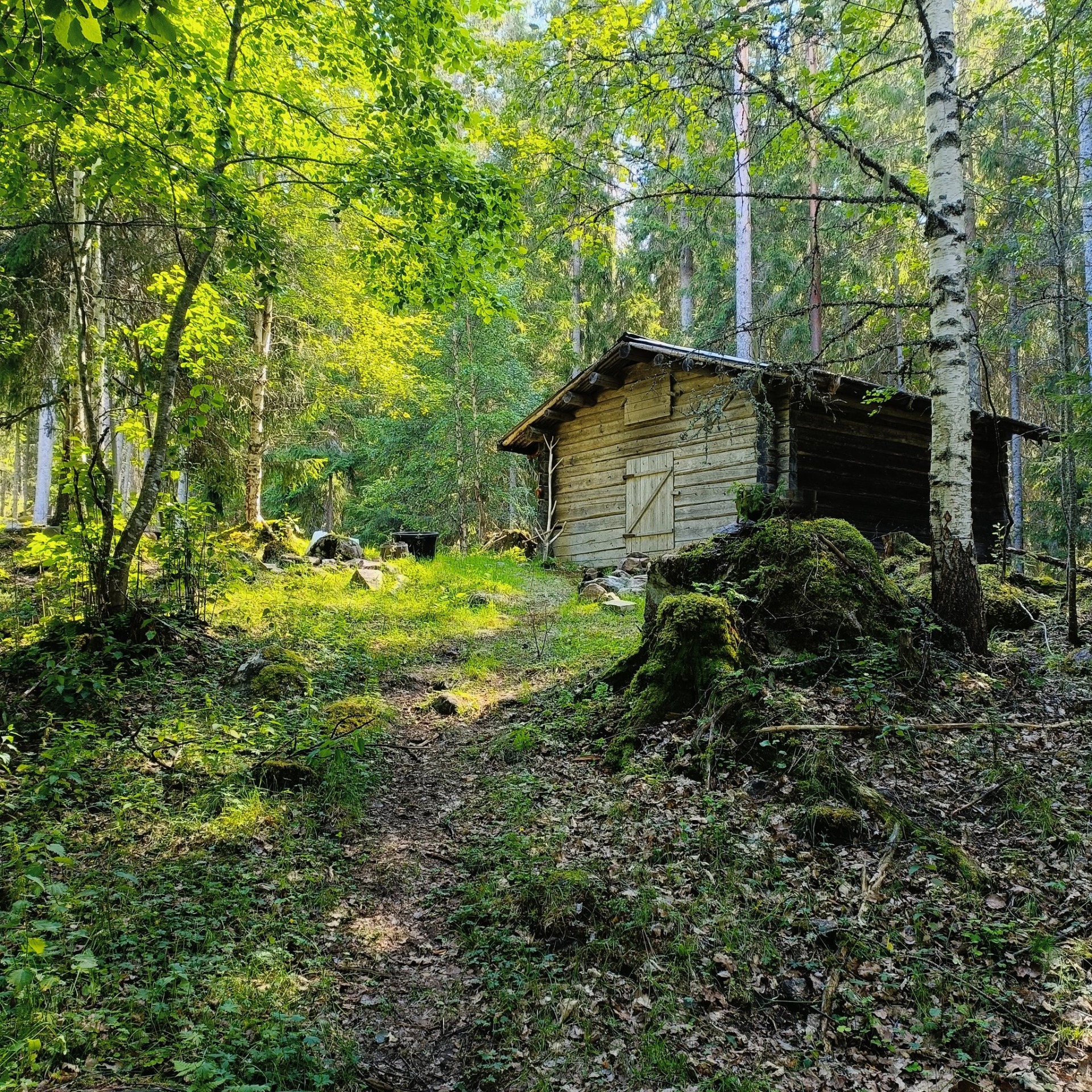 Den tradisjonelle skogfinske røykbadstuen ligger på et småbruk inne i skogen.